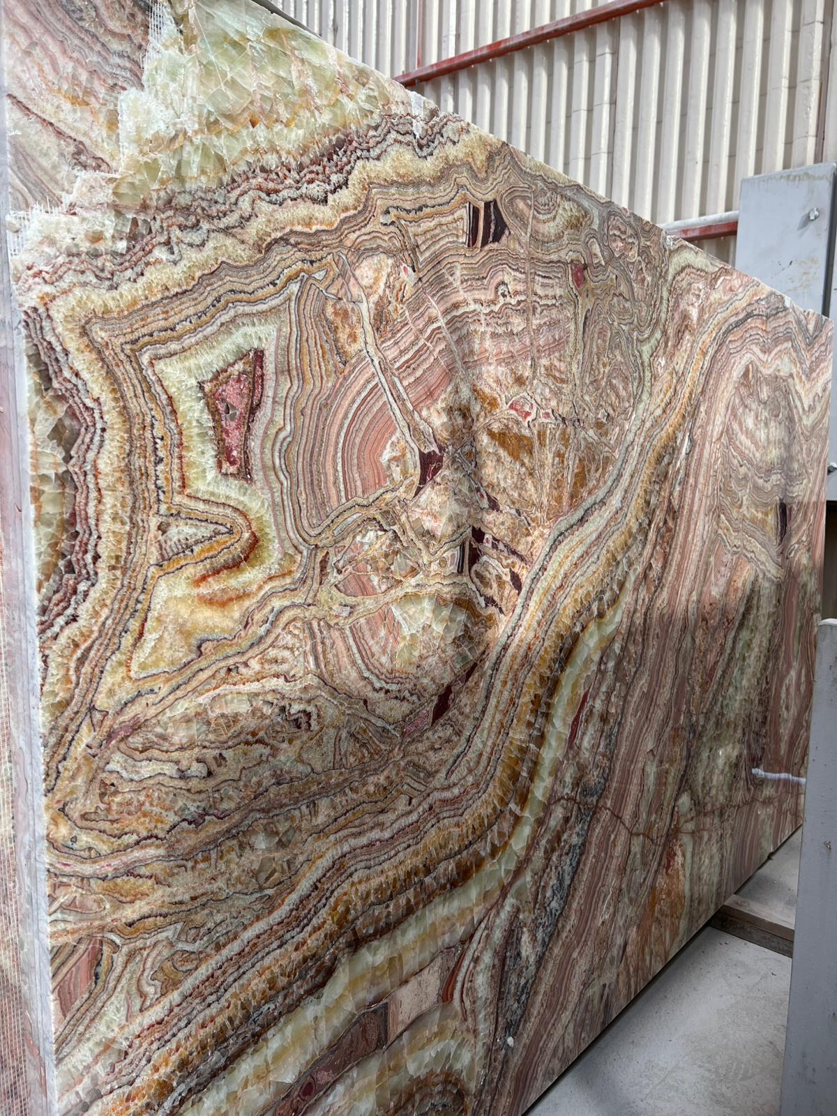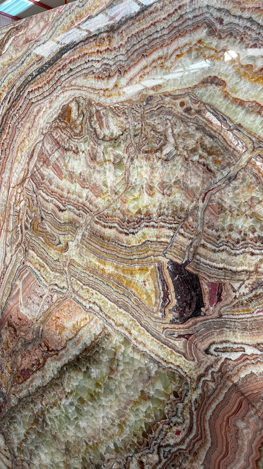 Onyx Mermeri, zengin renk seçenekleri ve etkileyici desenleriyle dikkat çeker. Doğal taşlar arasında en lüks ve estetik görünüme sahip olanlardan biridir. Genellikle yüzey kaplamaları, duvar dekorasyonları ve tezgahlar gibi alanlarda kullanılır. Işığa geçirgen yapısı, onyx mermeri ışıkla birleştiğinde benzersiz bir görsel etki yaratır. Onyx, zarif ve sofistike projelerde tercih edilen, şıklığı ve lüksü simgeleyen bir doğal taştır.
