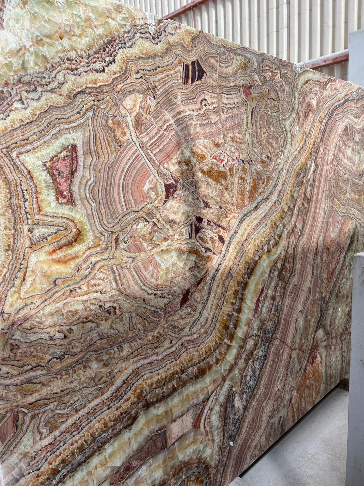 Onyx Mermeri, zengin renk seçenekleri ve etkileyici desenleriyle dikkat çeker. Doğal taşlar arasında en lüks ve estetik görünüme sahip olanlardan biridir. Genellikle yüzey kaplamaları, duvar dekorasyonları ve tezgahlar gibi alanlarda kullanılır. Işığa geçirgen yapısı, onyx mermeri ışıkla birleştiğinde benzersiz bir görsel etki yaratır. Onyx, zarif ve sofistike projelerde tercih edilen, şıklığı ve lüksü simgeleyen bir doğal taştır.